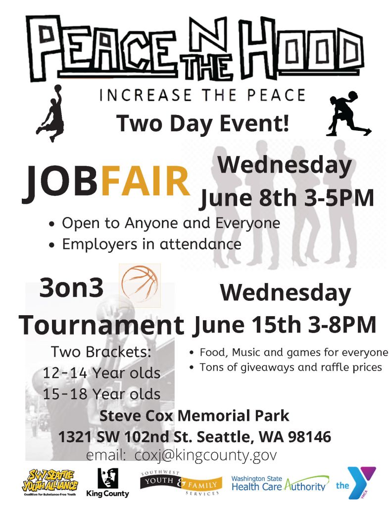 Day two of the annual event and in person for the first time since 2019! All SW Seattle youth invited! there will be music, food, prizes and basketball. All information on the flyer below.