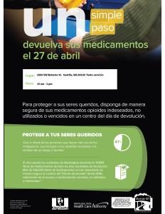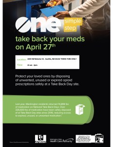 National Take Back Day is April 27th at the SW Seattle Police Precinct from 10 am -2 pm. Get rid of your unused prescription drugs!